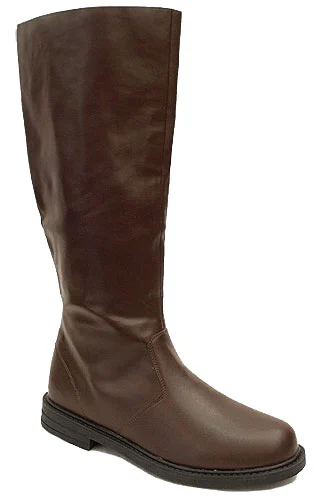 Adult Brown BootsFaux Leather ExteriorFabric InteriorBlack Rubber SoleSide Zipper ClosureThese brown boots make for a great addition to any costume. The slick boots are made of faux leather, fabric lining and a reliable rubber sole. A full side zipper is located on the side of the boot, creating both an easy access and a contemporary look. For whatever the occasion, these boots will be the perfect fit.