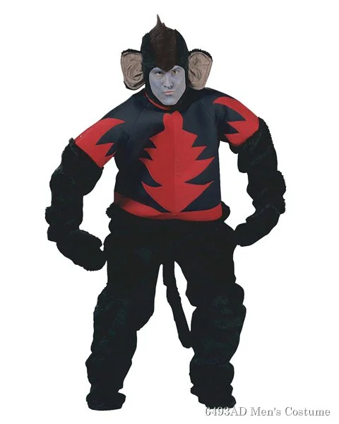 You can do a whole lot of monkeying around when you wear this costume derived from the classic hit movie The Wizard of Oz. This adult money outfit can be worn by men or women and consists of a complete long sleeved bodysuit with an attached red and blue t-shirt with an attached tail. Monkey mitts and boot tops are included with the costume as is a faceless head piece with giant ears attached. This standard size outfit will fit most men and women comfortably. Imagine the fun you’ll have when you fly into your next costume ball or Halloween party in this scary one of a kind costume that is sure to be a hit. You can add to the originality of this monkey suit by accessorizing it with Black Economy Feather Wings for Adults. Check out this great outfit and many others today at Wholesale Costume Club.