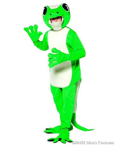 No, you’re not selling any insurance, but you are looking for tasty insects and maybe a few females when you wear this Gecko Costume for Adults. This one of a kind costume is perfect for men and women, and you’ll be the only person at your next costume party or Halloween bash wearing this outfit. The Gecko costume features a green and white top with an attached lizard tail, and green pants. Gloves for your feet and an over-sized open-faced Gecko mask complete a unique outfit that you’ll enjoy wearing for years to come. This whimsical lizard costume for adults will fit men and women up to a men’s size of large. Check out this great costume idea along with all of the other accessories available at Wholesale Costume Club, the source of the best deals in costumes at the very lowest prices on the internet.