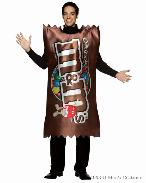 Play the part of everyone’s all-time favorite candy that â?omelts in your mouth, and not in your handâ? when you wear the Adult M & M Plain Wrapper Costume. The M & M outfit includes a brown tunic with the trademark M & M wrapper graphics emblazoned on the front. The M & M costume is available in one standard size that will fit most adult men and women comfortably. This is the ultimate in cool and sexy Halloween costumes and you won’t find this costume at a lower price in any retail store or internet web site. Add even more to the look of this M & M ensemble with a pair of Black Cotton Gloves for Adults. Be sure to check out all of the costume ideas for men, women, and children of all ages, as well as the accessories that will make your costume and your next party the very best ever. * Features a brown tunic with the M and M Plain wrapper design and logo. Shirt and pants not included. * This is an officially licensed costume.