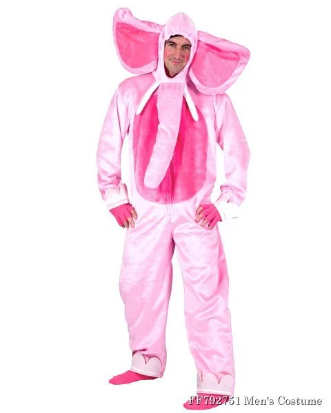 Remember that scene from Dumbo with the Pink Elephants on parade? This Halloween your friends just might think they are hallucinating when they see you dressing in the Men’s Pink Elephant Costume. You can assure them that they are not seeing things because you are, in fact, wearing a Pink Elephant Halloween costume. This humorous costume features a one-piece pink plush jumpsuit with and attached tail and cuffs that resemble elephant feet. The headpiece has a long trunk, jumbo ears and tusks too. This is truly an unusual men’s costume that will spark many jokes about what would cause one to see pink elephants in the first place. Amuse your friends and costume party guests of all ages in this great costume that comes in two sizes to fit just about anyone.