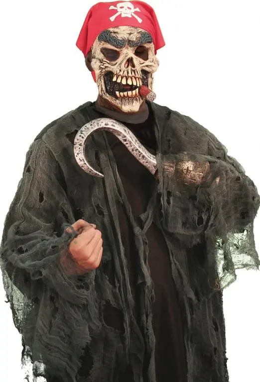 Explore the dark seaCostume includes: Detailed latex skeleton mask with bandana attached, hook hands, and tunic with monster cloth.Available size: