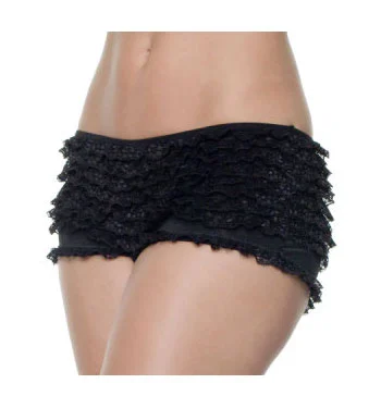 Ruffle Boy ShortsAdd extra coverage to your Halloween costume with these plus size boy shorts. The black shorts feature eight layers of ruffles and lace around the bottom hemlines. Great for under any sexy costume!