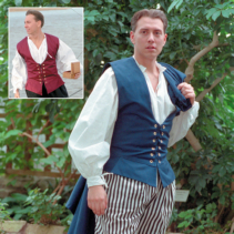 - To complete the look as shown, we recommend: Sailor’s Vest in Navy (#19757), Sailor’s Pants Stripes (#19759), Knee High Men’s Ren Boots (#19766), and the Twill Cloak (#19764) draped over his shoulder – all sold separately. This is the shirt featured with the following European Collection items: Sailor’s Vests, Sailor’s Pants – Striped, and the Twill Cloak.